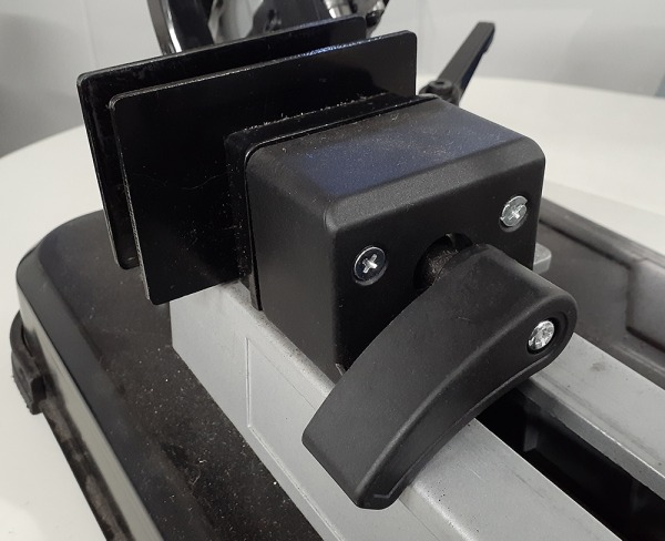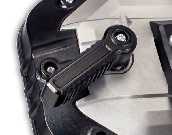 帯のこ刃の張り具合が一定にかつスピーディーに刃の交換が行えるレバー付き
