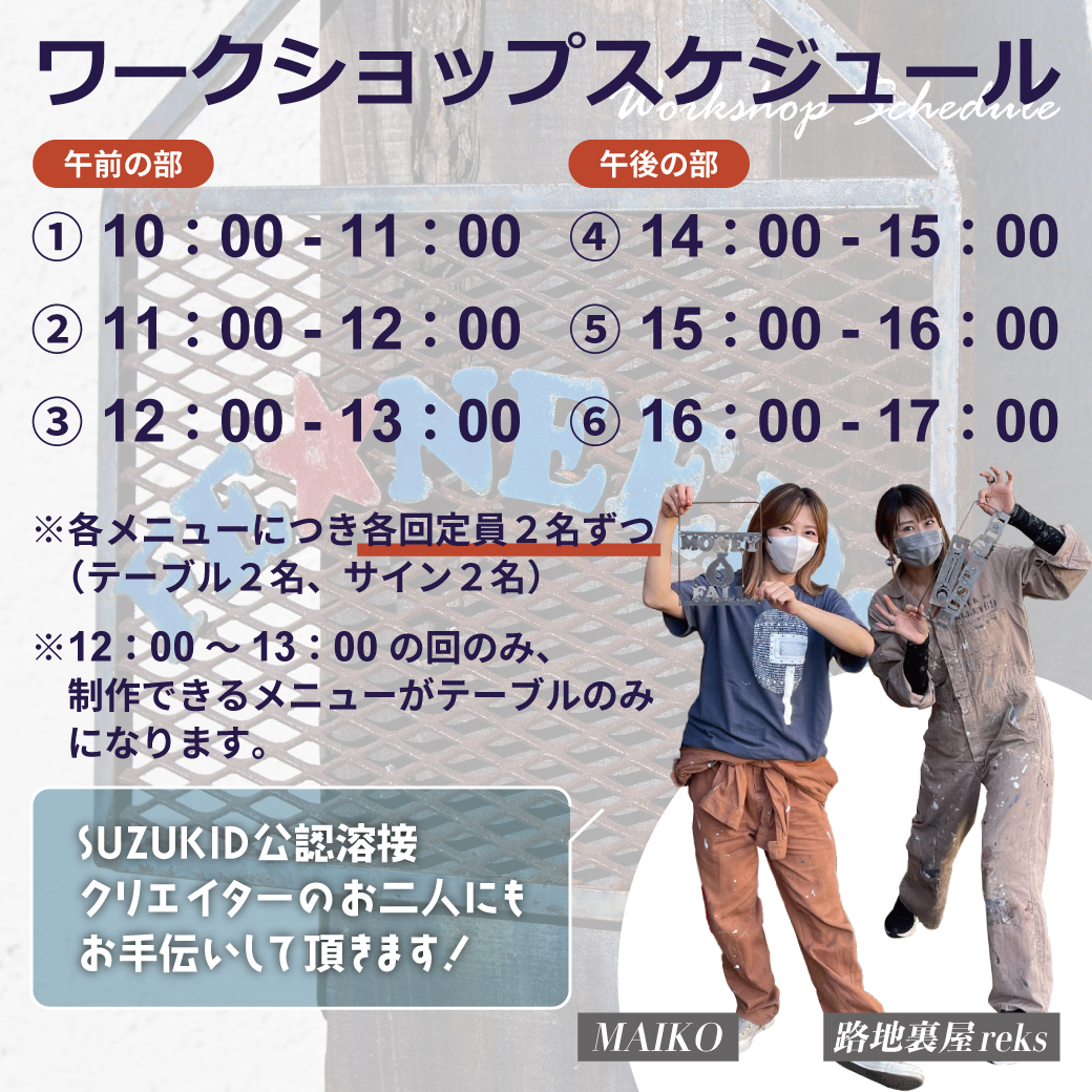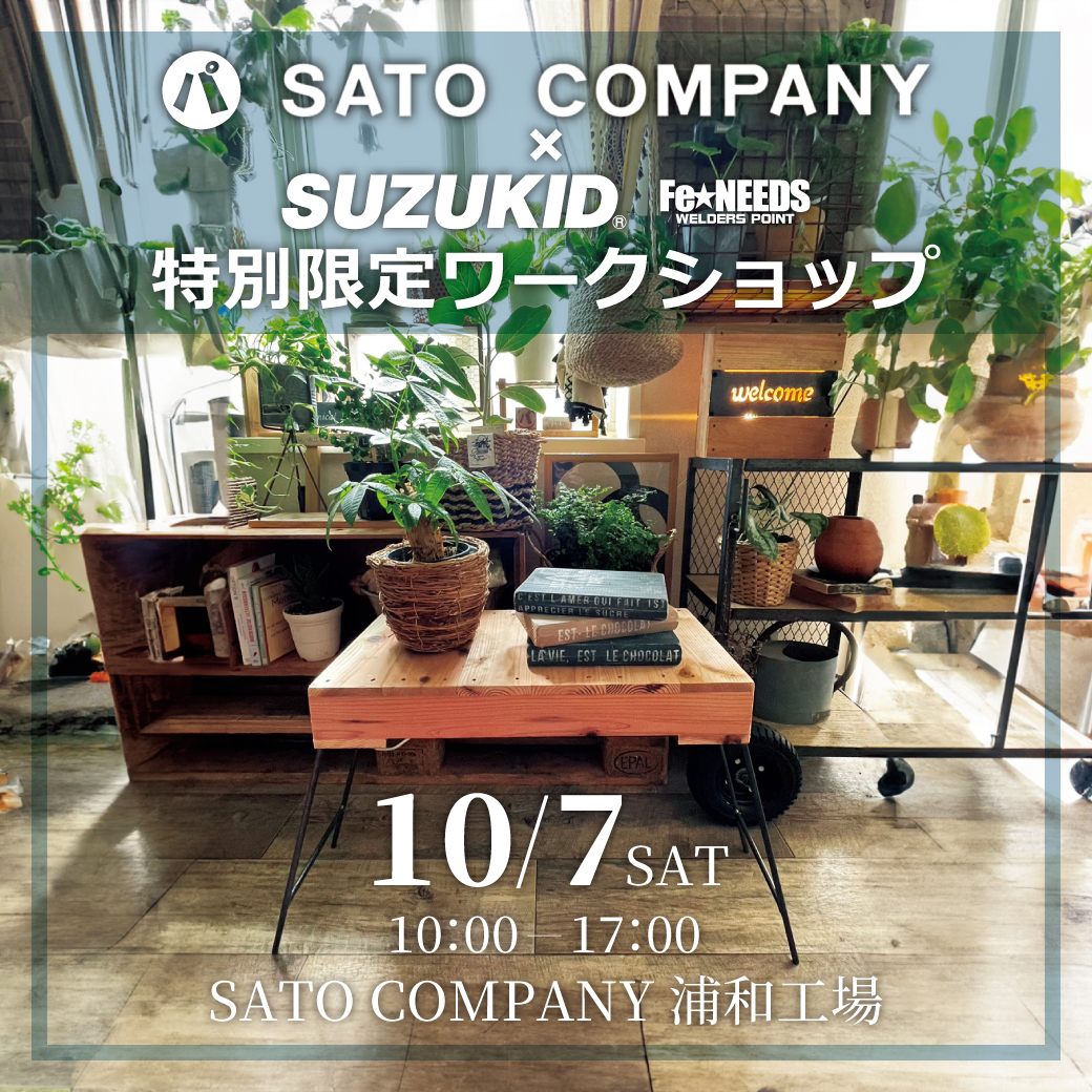 開催場所は、SATOCOMPANYの浦和工場。SUZUKID溶接公認クリエーターの「MAIKO」「路地裏屋reks」お二人が手掛けた2階改装スペースで【SATOCOMPANY×DIYクリエーター】のトークショーも行われます。