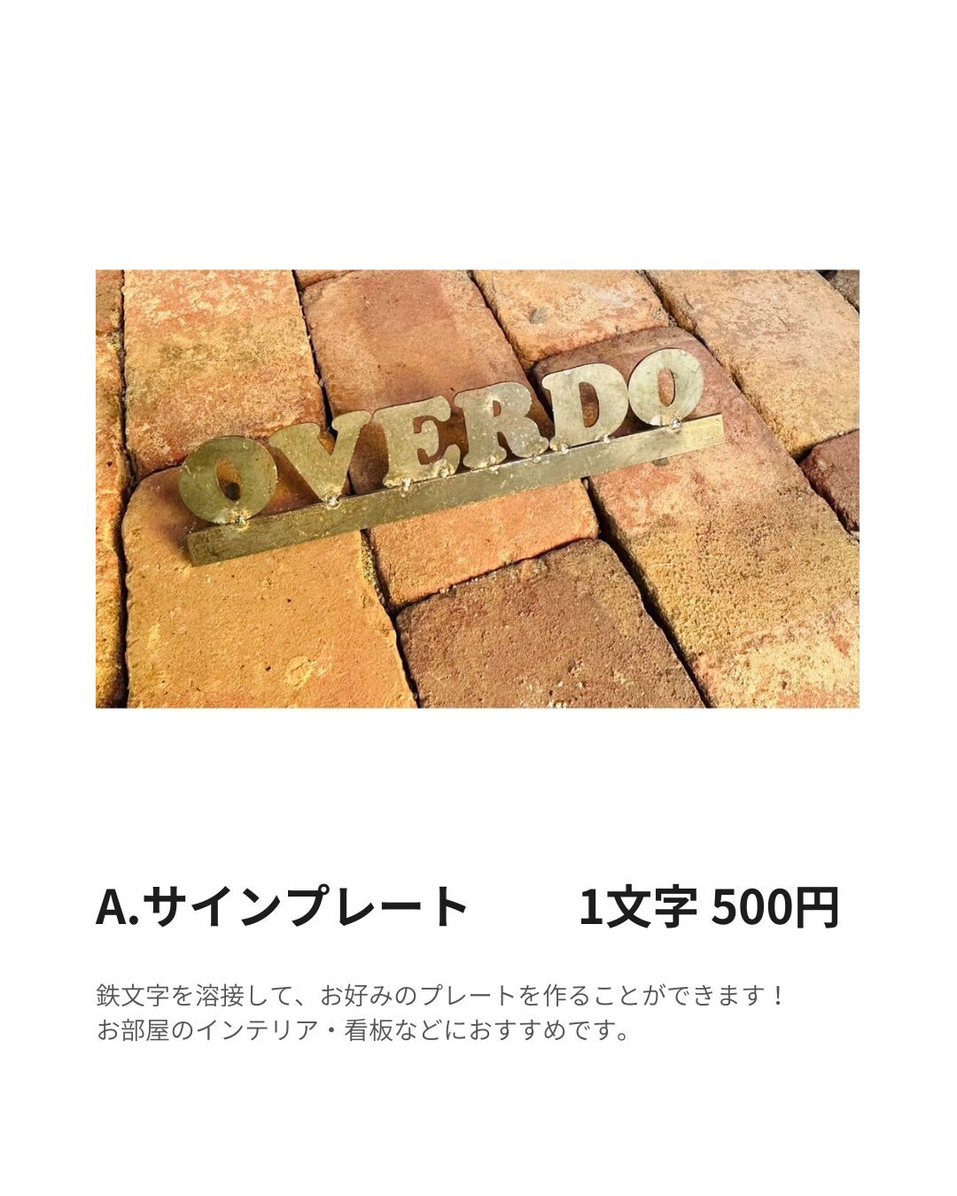 A. サインプレート 1文字¥500