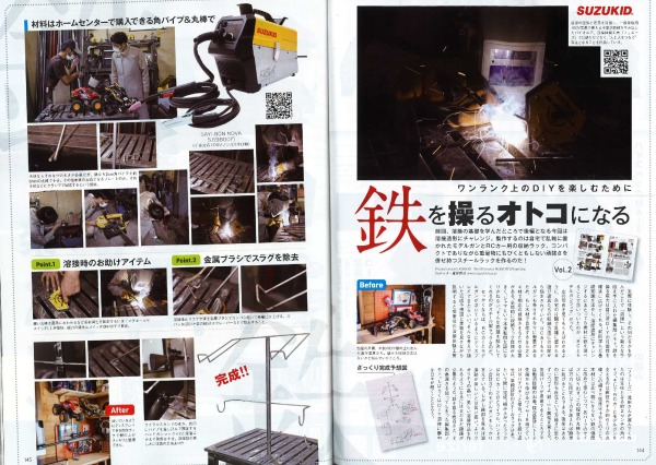「鉄を操るオトコになる」をテーマに溶接の基礎から実際にモノの製作まで、の第2弾です! ホームセンターで購入できる材料(鉄)を用いて、エアガンとRCカーを飾るスチールラックを製作しました!! ワンランク上のDIYを目指し楽しめたのか、、、ぜひ、本誌をご覧ください♪