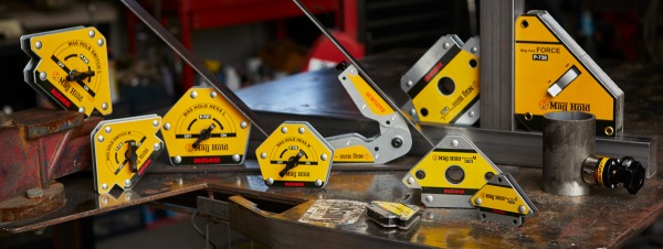 溶接作業時に役立つマグネット式の保持器具は必需品。