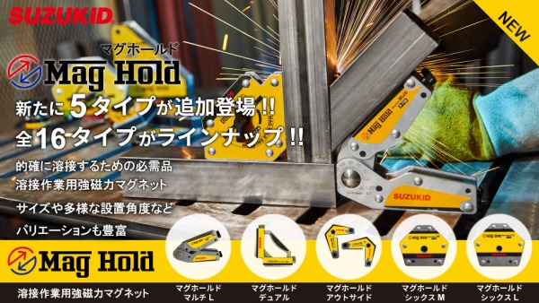 新製品発売のお知らせ 11月1日発売【更なる作業サポートを!早くも新モデル登場!!】 2021年10月29日 作業がスムーズになる!とご好評をいただいている溶接作業用強磁力マグネット“マグホールド”シリーズに早くも新モデルが登場!磁力ON/OFFスイッチ付きのバリエーションもより豊富にラインアップ◎磁力が強めのアイテムや、ワークの外側からしっかりとホールドできるタイプなど、みなさまの作業を様々な角度からサポートいたします★ぜひ、製品ページをご覧ください! 製品ページはこちら 11月1日発売【更なる作業サポートを!早くも新モデル登場!!】 作業がスムーズになる!とご好評をいただいている溶接作業用強磁力マグネット“マグホールド”シリーズに早くも新モデルが登場!磁力ON/OFFスイッチ付きのバリエーションもより豊富にラインアップ◎磁力が強めのアイテムや、ワーク […] URLをコピー Twitter Facebook B! Hatena LINE Pinterest コピーしました