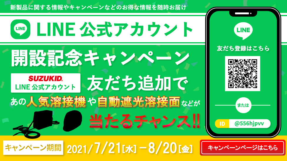 LINE公式アカウントの開設を記念して「LINEの友だちを追加していただいた方限定」で溶接機や自動遮光溶接面がもらえる豪華抽選キャンペーンを開催します!!
