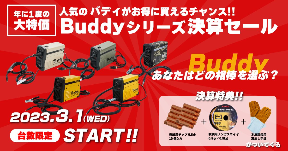 ぜひお得なこの機会に、Buddyシリーズを手に入れて溶接ライフをエンジョイしてください♪