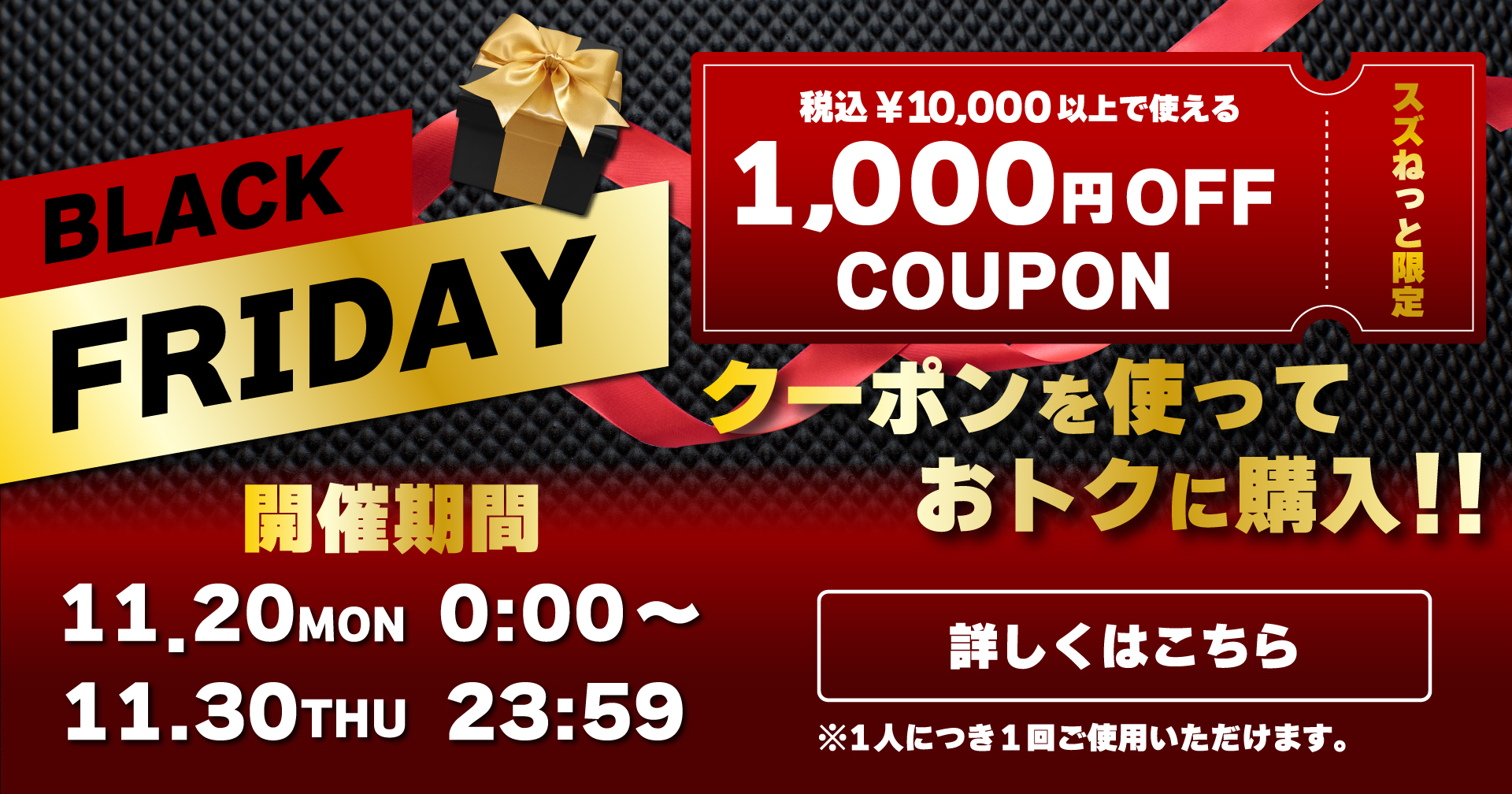 この度、11月20日(月)から11月30日(木)にてスズねっと限定でのブラックフライデーを開催いたします。