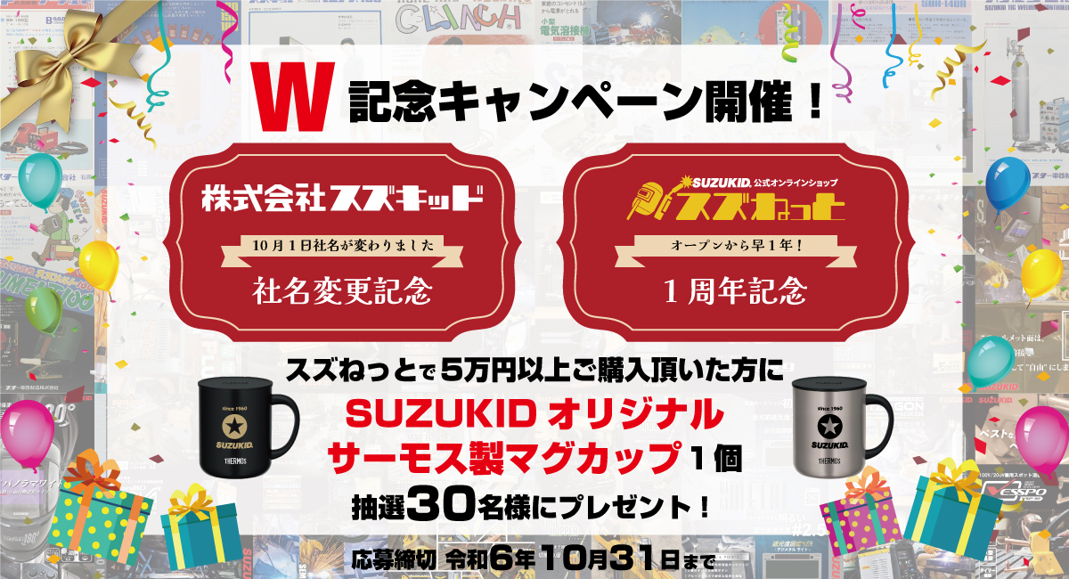 「スター電器製造株式会社」から「株式会社スズキッド」に社名を変更した記念ならびにSUZUKID公式オンラインショップ「スズねっと」が1周年を迎えることを記念してスズねっと限定のプレゼント企画を開催!