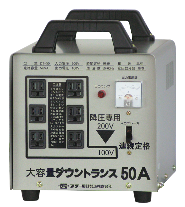 | 種類 | 降圧専用ポータブル変圧器 | 降圧専用ポータブル変圧器 | 降圧専用ポータブル変圧器 | 降圧専用ポータブル変圧器 | 降圧専用ポータブル変圧器 | 降圧専用ポータブル変圧器 |