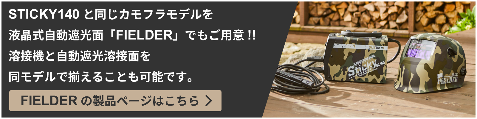 Buddy(半自動溶接機)・FIELDER(溶接面)に続き、アーク溶接機のSTICKYシリーズにも待望のカモフラージュモデルが誕生!!