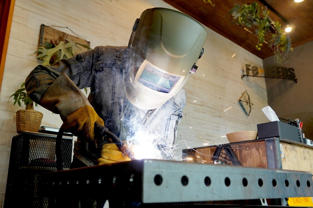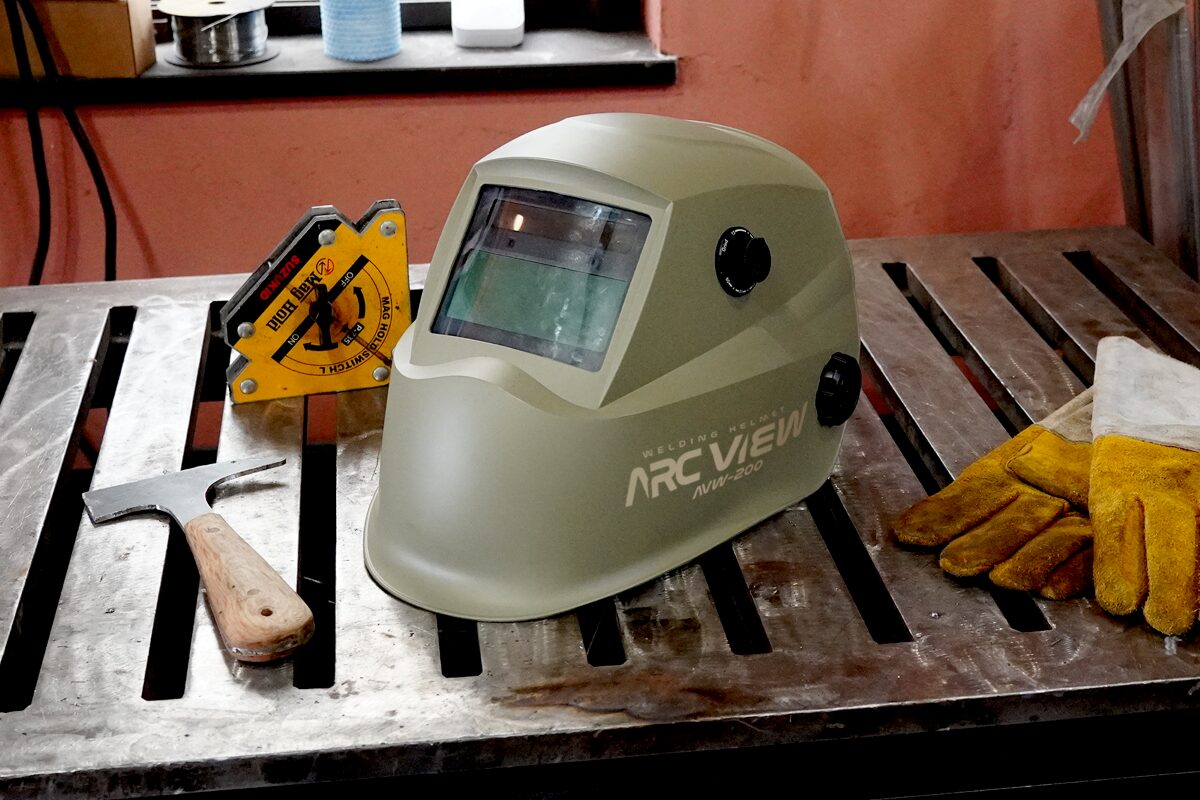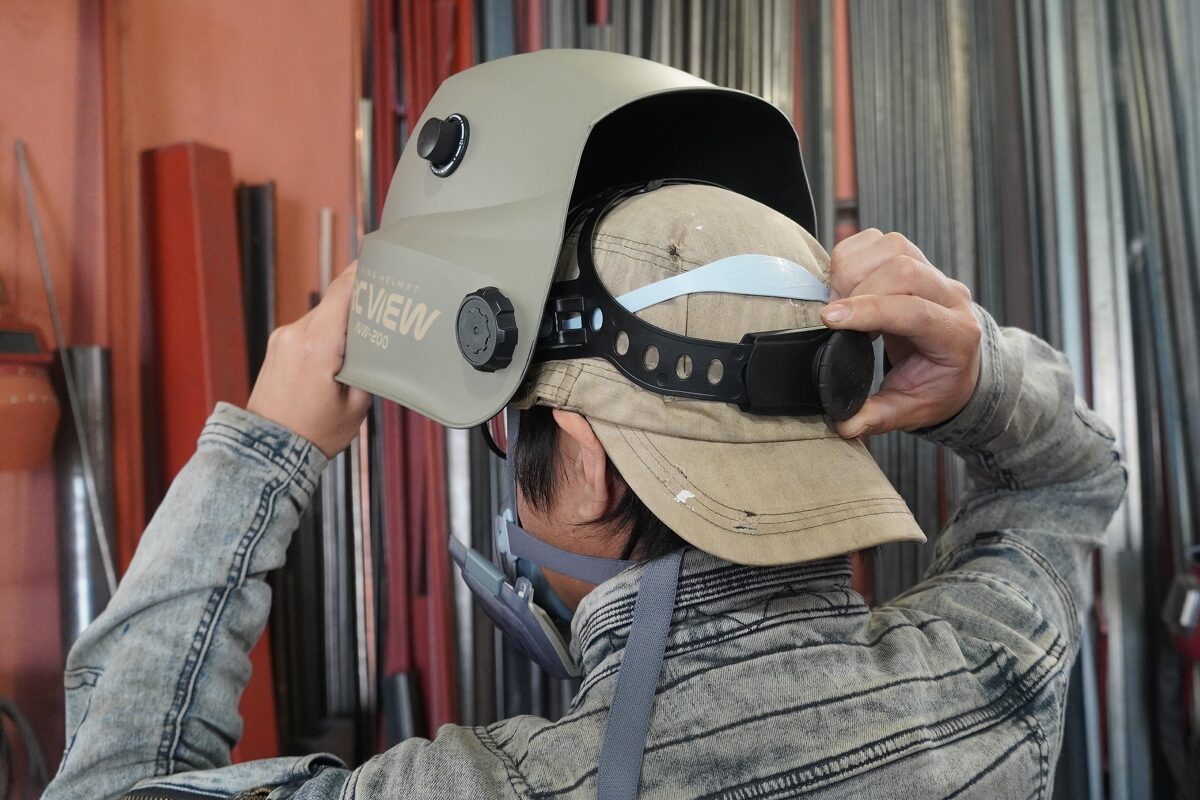 溶接光から目を守り、また両手がフリーになることで作業効率もアップ。