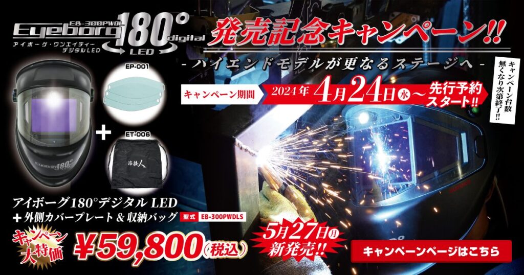 人気の液晶式3面自動遮光溶接面「アイボーグ180°デジタル」が更に進化し充電式&LEDライト搭載モデルとなって登場!!
