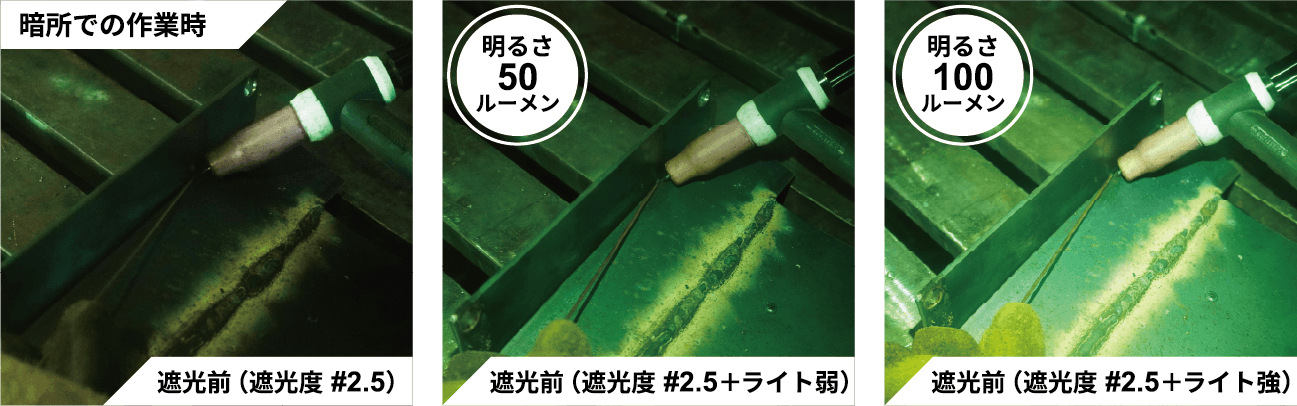 遮光前遮光度#2.5で溶接前作業を明るい環境にします。