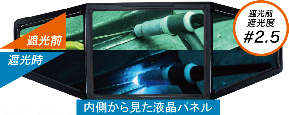 眩しさを軽減し鮮明な視界を保つ液晶”ブルーフィルタ”は接地面や溶融池の境目が見やすく、高出力溶接でもその能力を発揮する。
